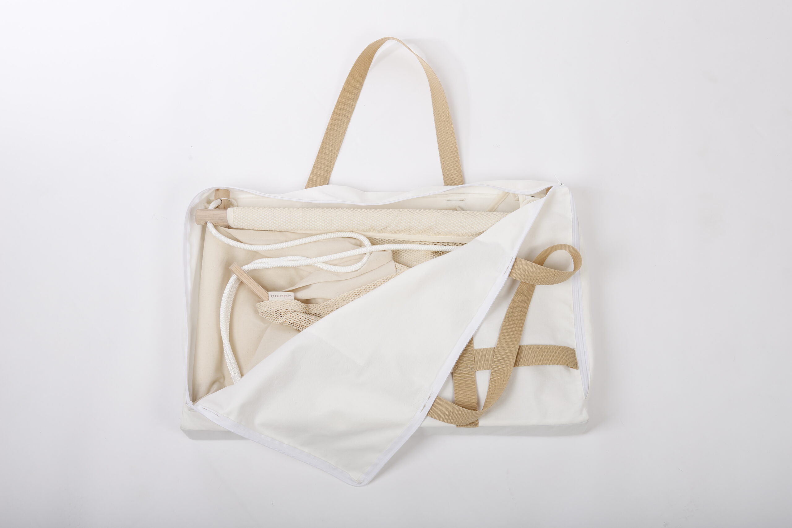 - Mérete: 74 × 47 × 10 cm – ideális az Adamo babahinta összeszerelt állapotban történő szállításához