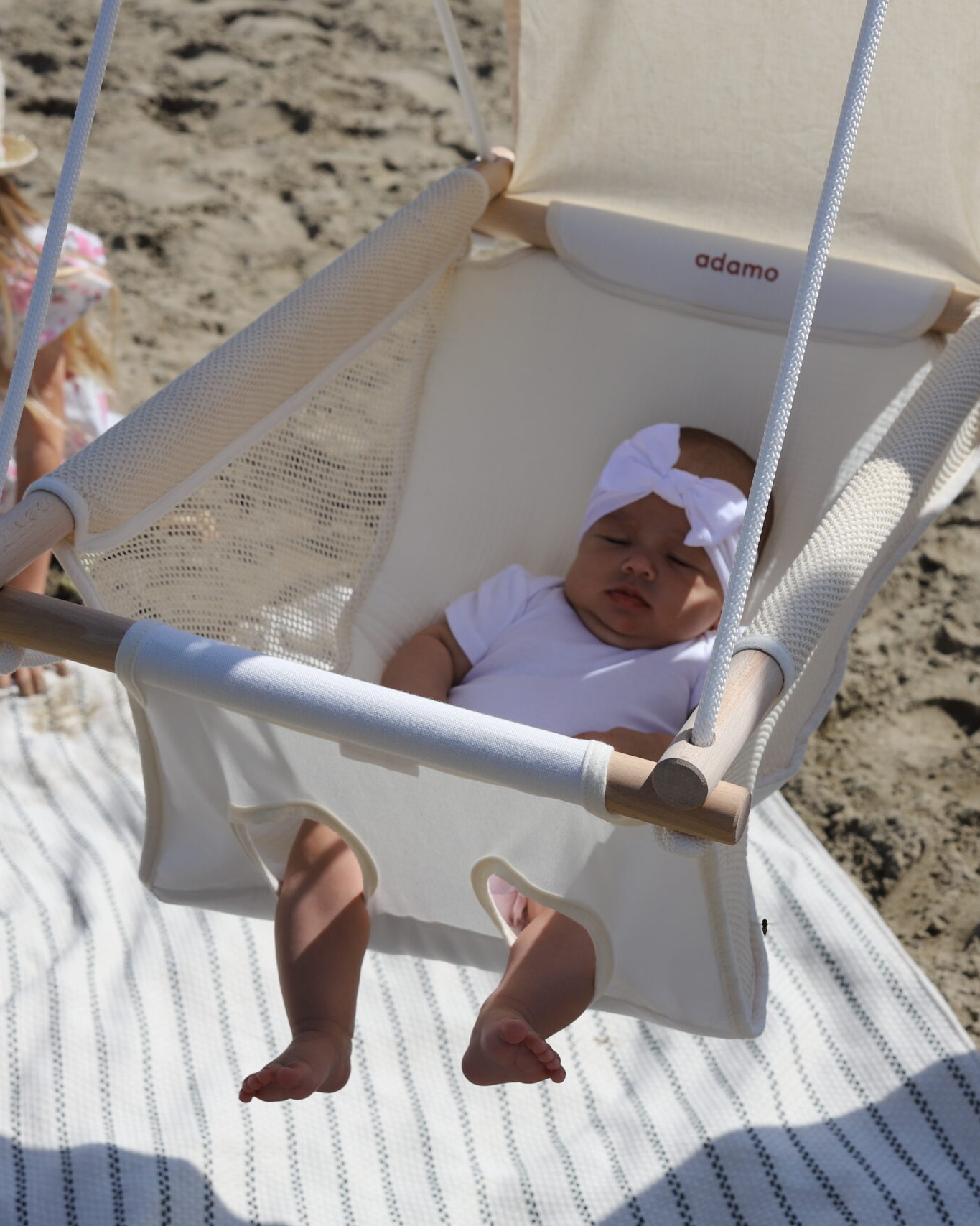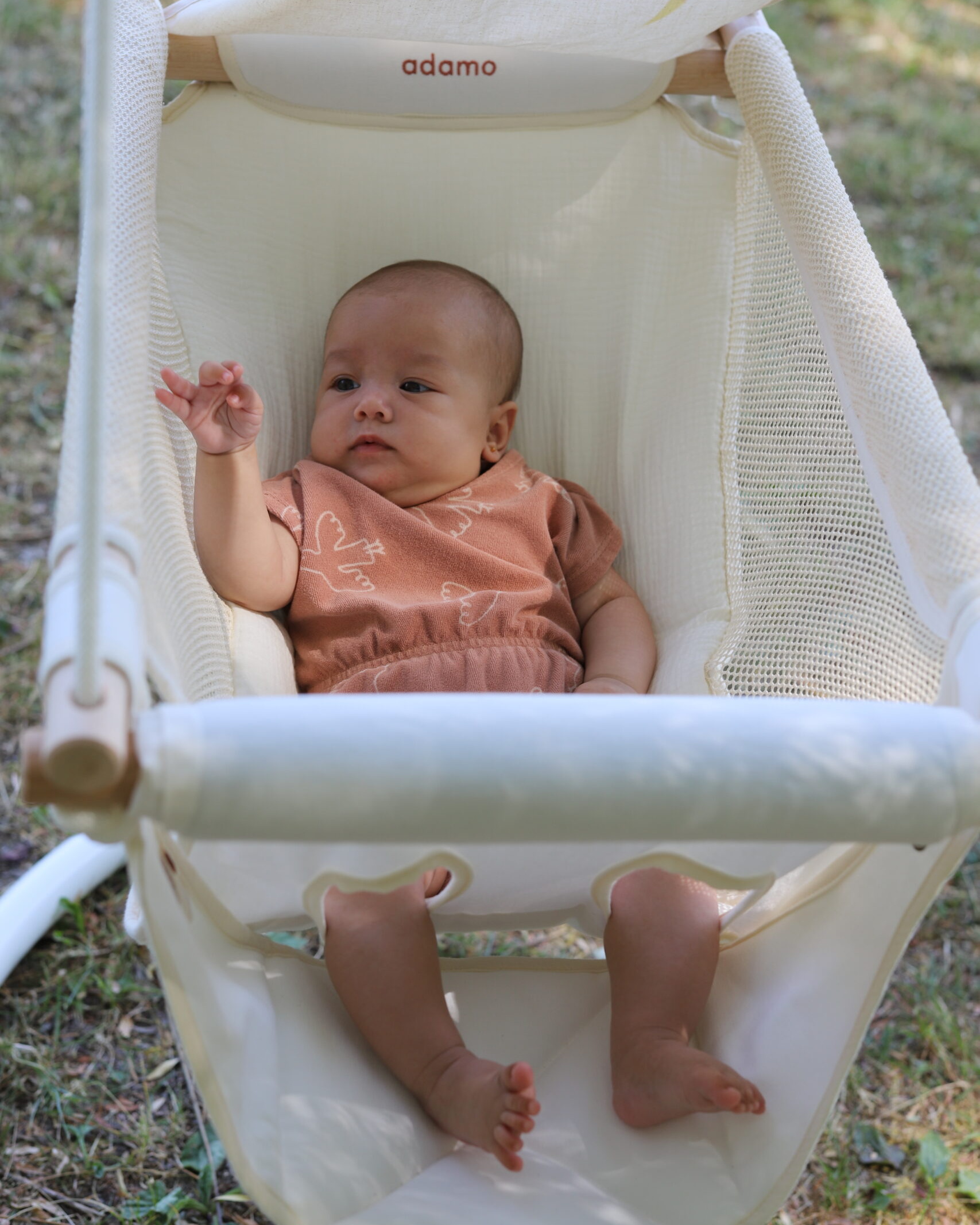 Az Adamo Summer babahinta könnyű, kompakt és egyszerűen áthelyezhető a lakásból a teraszra vagy akár a nyaralásra is magatokkal vihetitek. Egy nyári piknik a kertben vagy egy délutáni ejtőzés a nagyiéknál – a baba pihenőhelye mindig veletek lehet