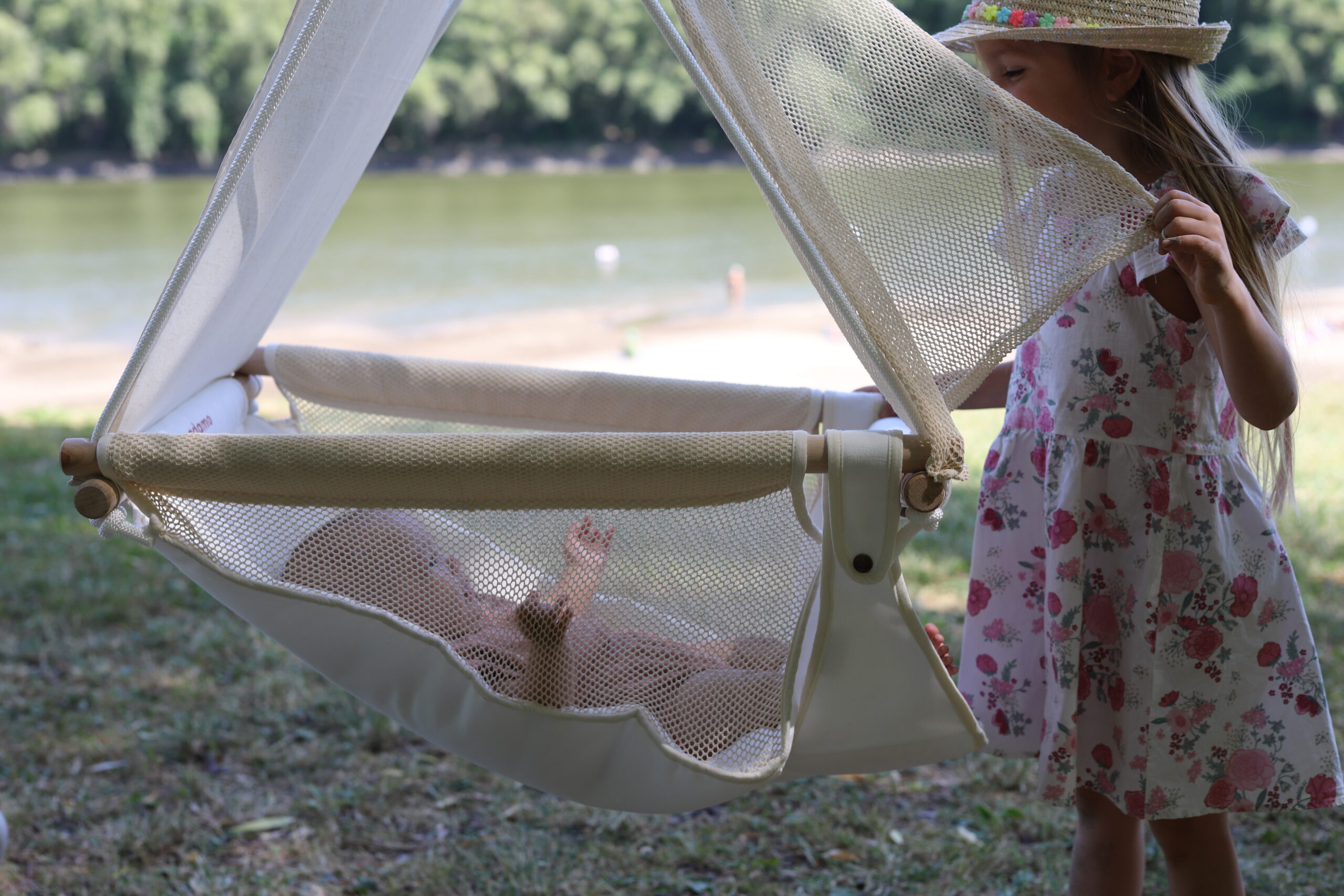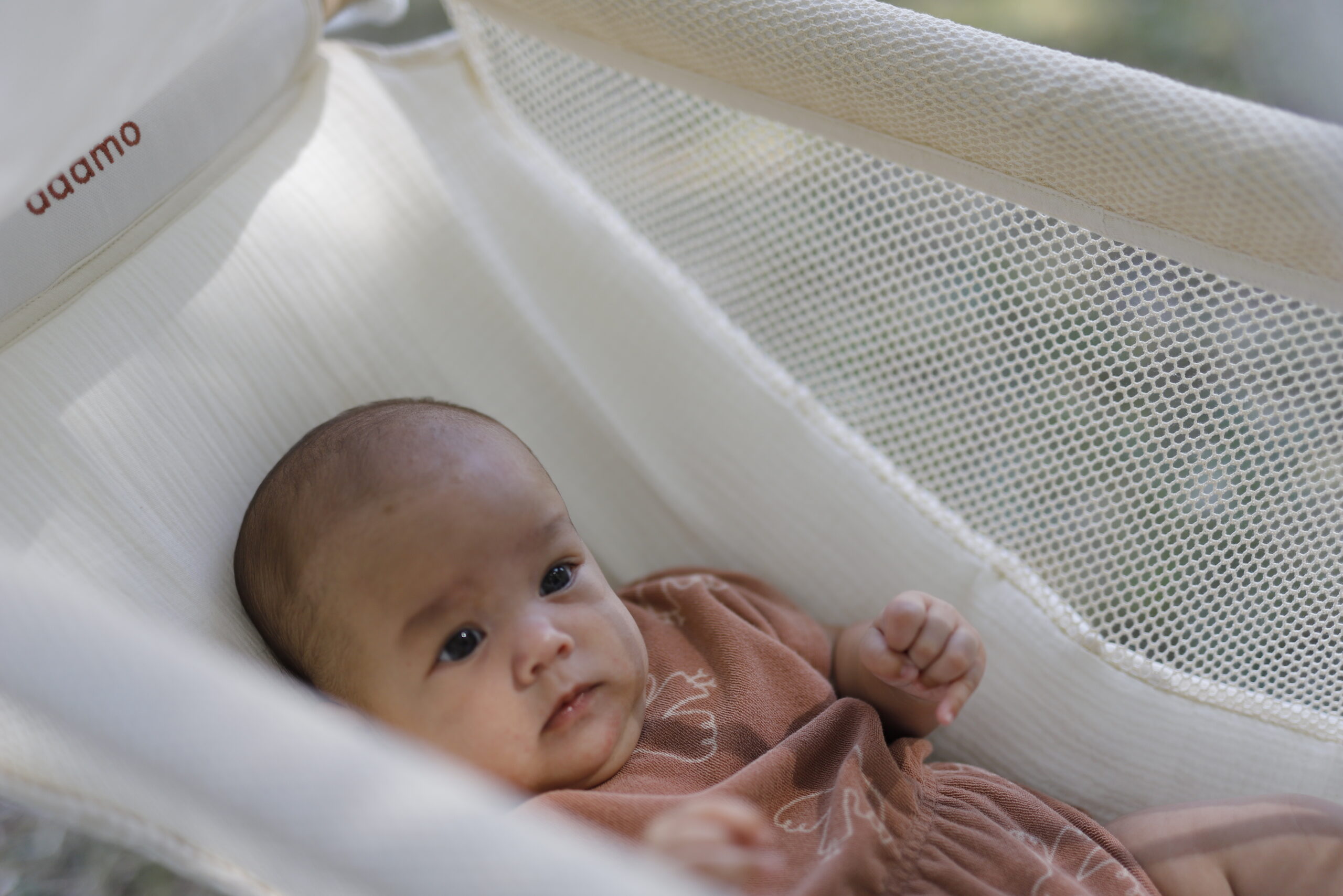 A nyitott hálós oldalaknak köszönhetően a baba nem csak felfelé néz, hanem oldalra is könnyedén kitekinthet. Ez fejleszti a figyelmét és érzékelését – közben pedig élvezheti a külvilág látványát, legyen szó a mozgó levelekről, madarakról vagy a családtagok mozgásáról.