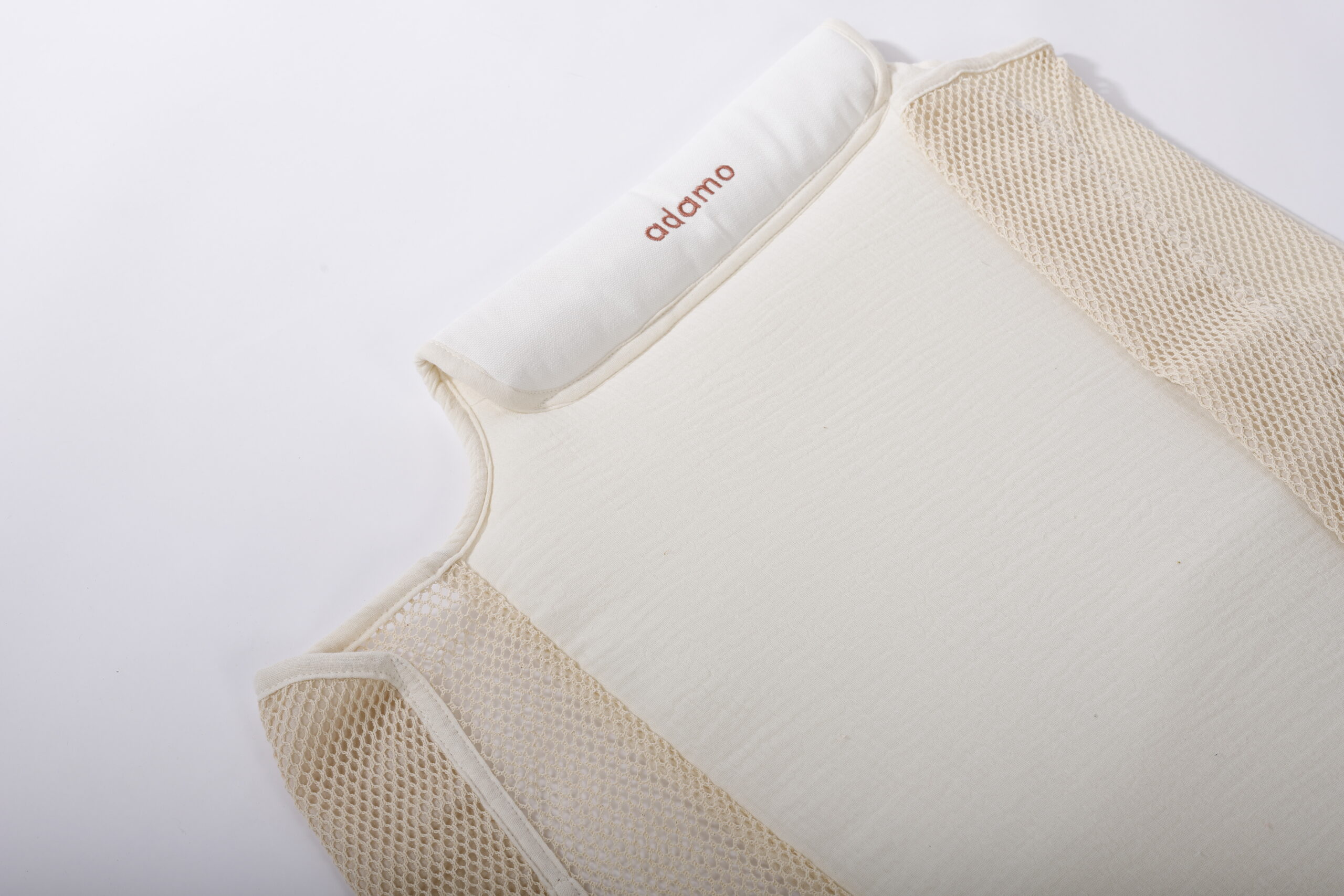 A hinta két oldalsó része organikus natúr hálóanyagból készült, így a levegő szabadon áramlik a hintában. A baba nem melegszik túl, nem izzad bele a textilbe – mindig friss, szellős, kellemes környezet veszi körül, akár egy hűs kis fészekben.